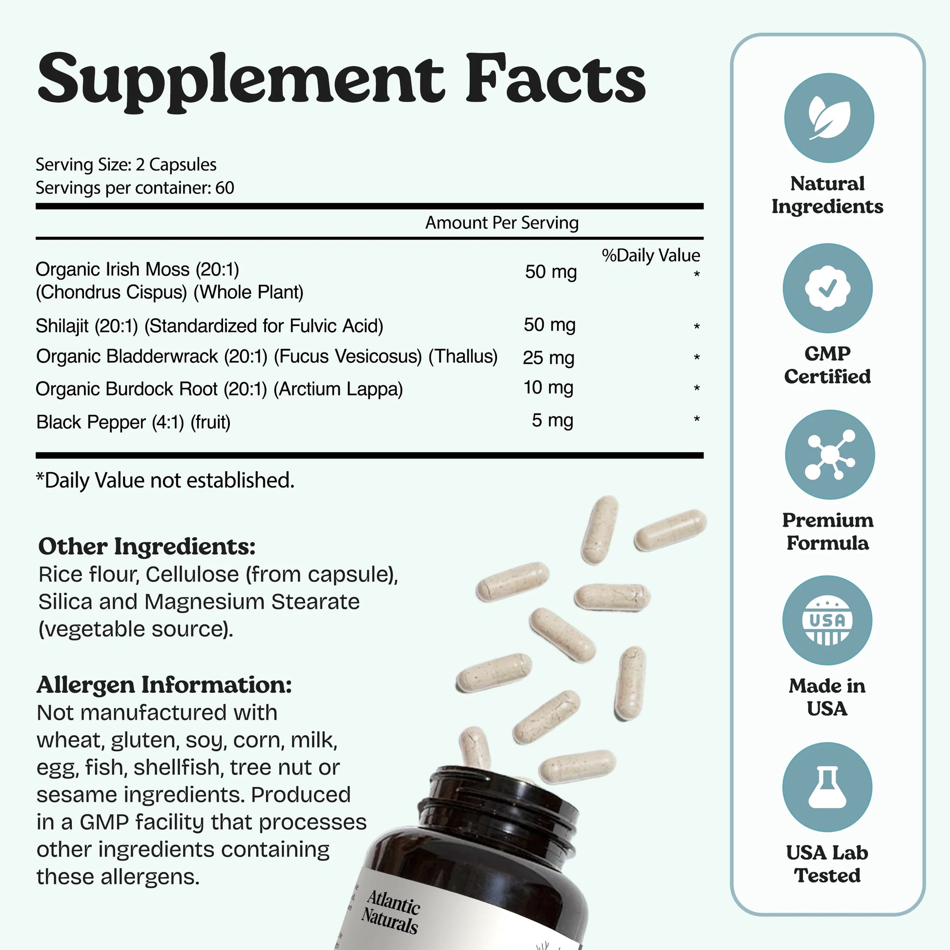 Organic Sea Moss, Shilajit, Organic Bladderwrack, Organic Burdock Root, Black Pepper Extract